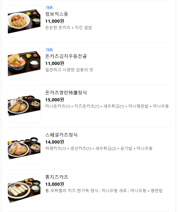 - 메뉴 선택 폭이 넓어요: 기본 로스카츠부터 통치즈카츠, 고구마치즈카츠 등 다양한 옵션이 있어요.