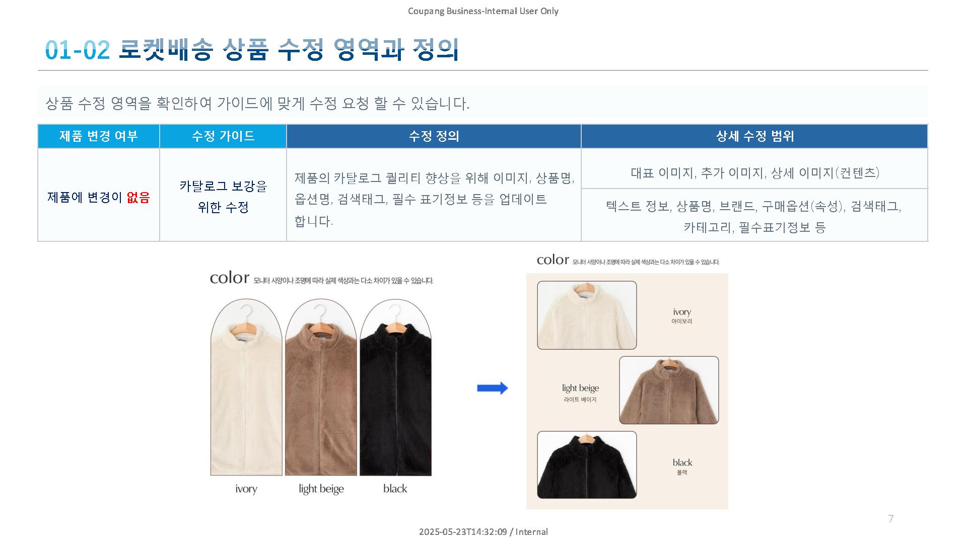 | 예시 | 이미지 개선, 텍스트 수정, 옵션명 변경 | 패키지 변경, 성분·무게 변경 |