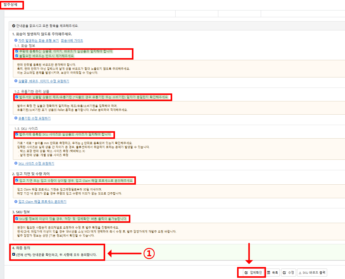 6️⃣ 발주확정 전 점검사항 체크