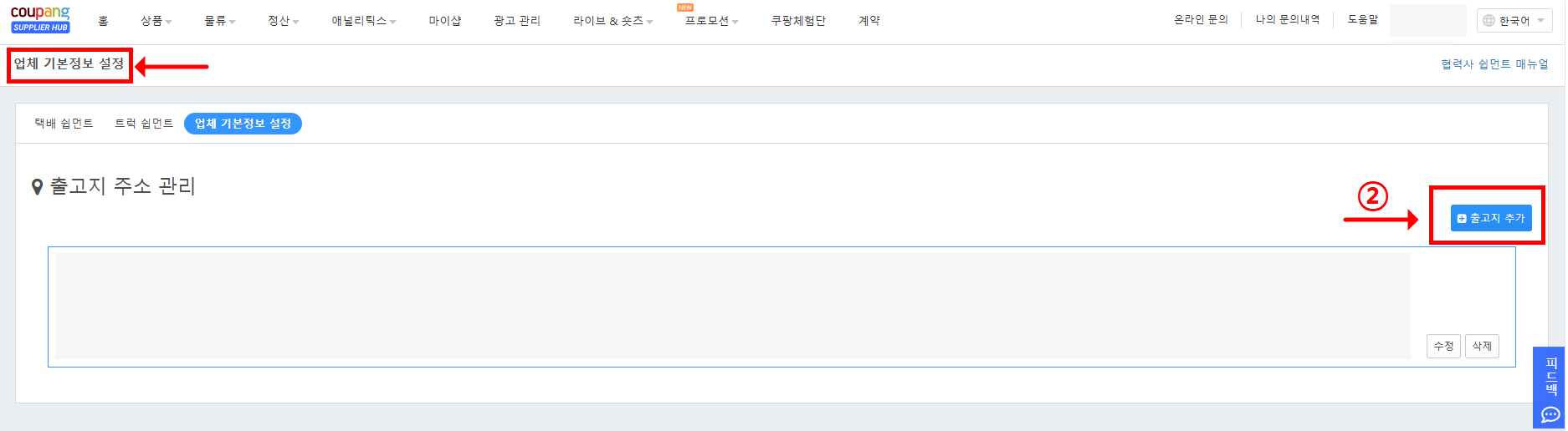 1️⃣쉽먼트 등록 | ① 출고지 등록