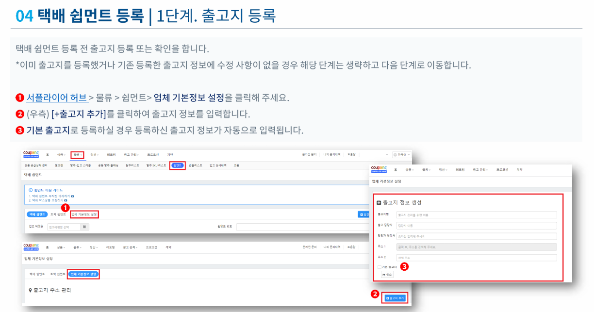 1️⃣쉽먼트 등록 | ① 출고지 등록